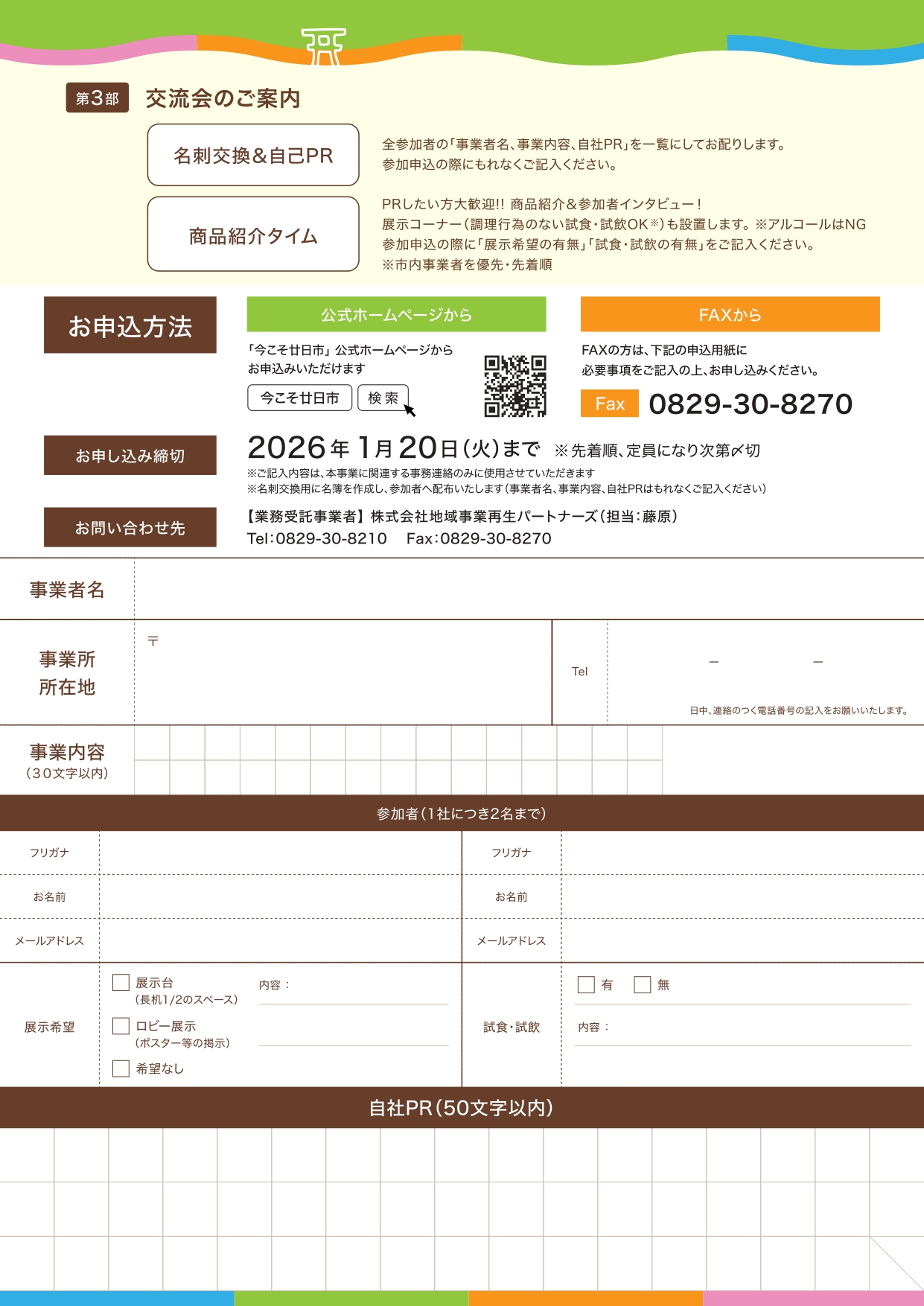 定員50事業者、100名程度(1社2名まで)※申込期限:令和8年1月20日(火)(ただし先着順、定員になり次第〆切)お申し込みはお早めに!